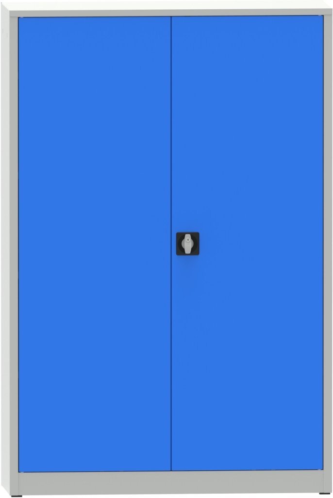 Szafa na dokumenty metalowa dwudrzwiowa spawana, szerokość 1200, wysokość 1800, głębokość 600 mm, 4 regulowane półki. Kolor korpusu RAL 7035 jasnoszary, drzwi RAL 7035 jasnoszary i RAL 5012 niebieski.
