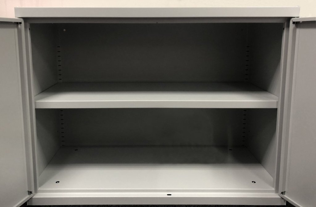 Szafa na dokumenty metalowa dwudrzwiowa, 1 półka, szerokość 1000, wysokość 745, głębokość 450 mm. Kolor jasnoszary RAL 7035.