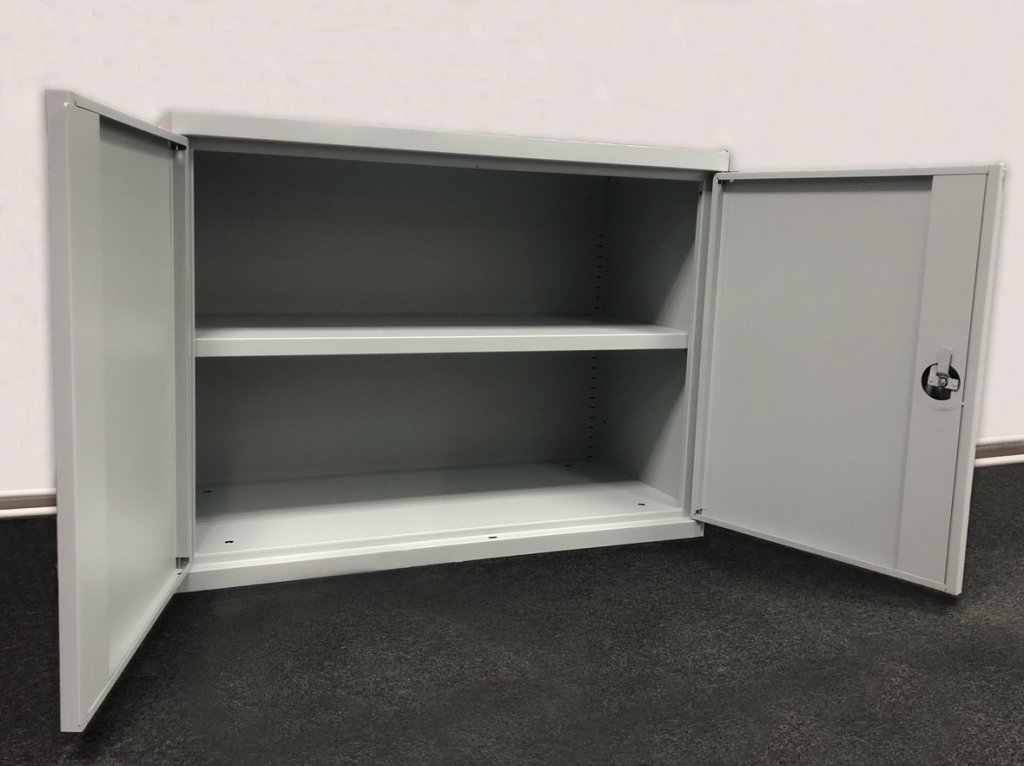 Szafa na dokumenty metalowa dwudrzwiowa, 1 półka, szerokość 1000, wysokość 745, głębokość 450 mm. Kolor jasnoszary RAL 7035. pełny opis i parametry
