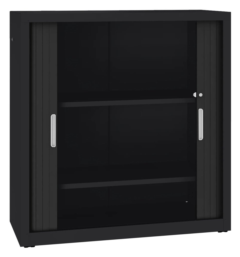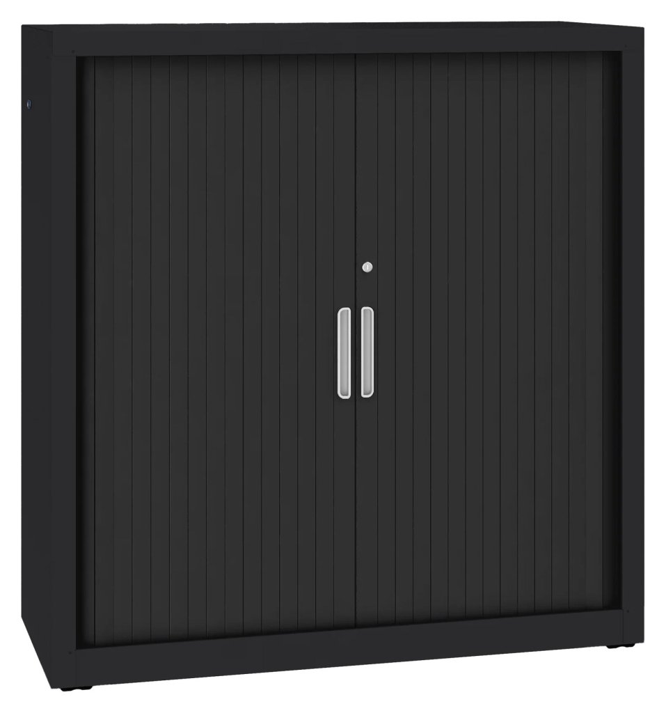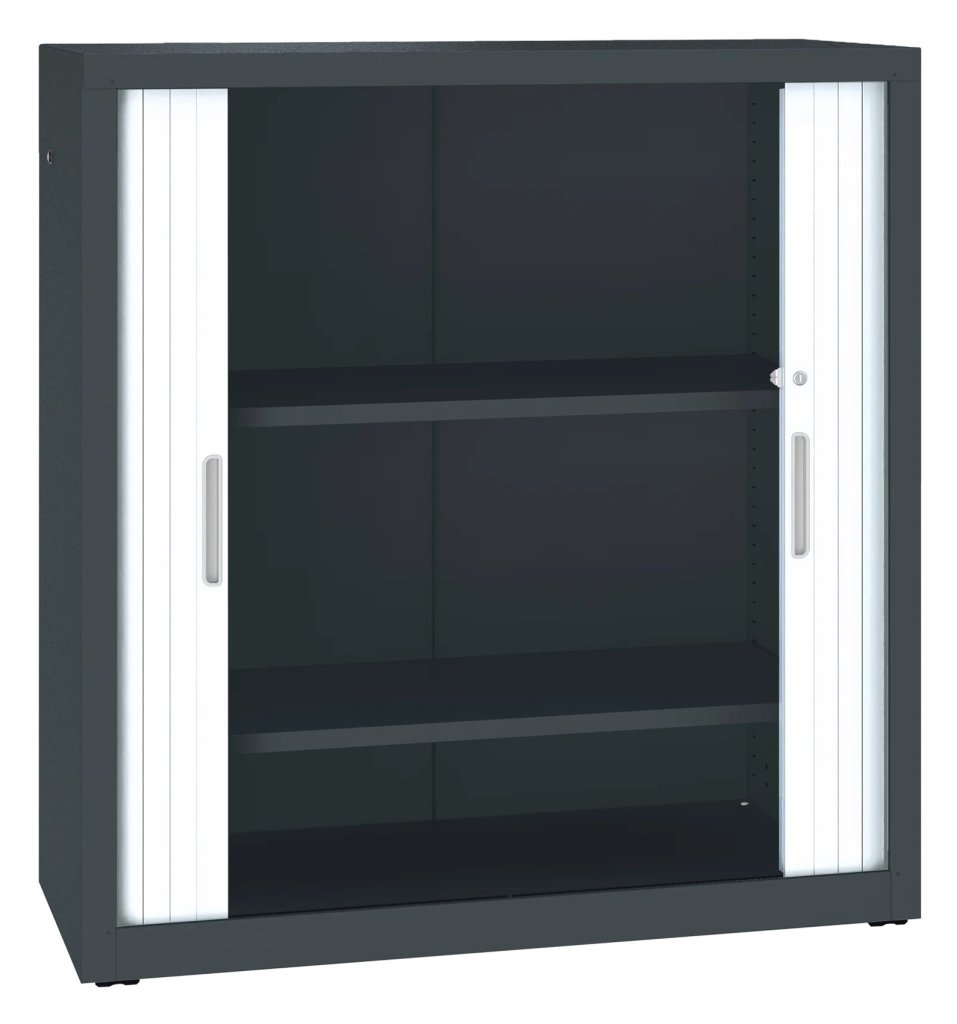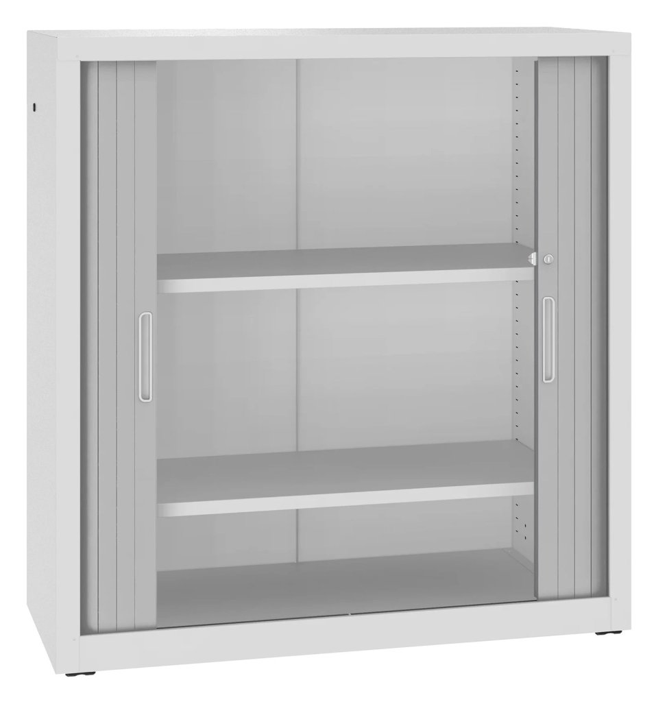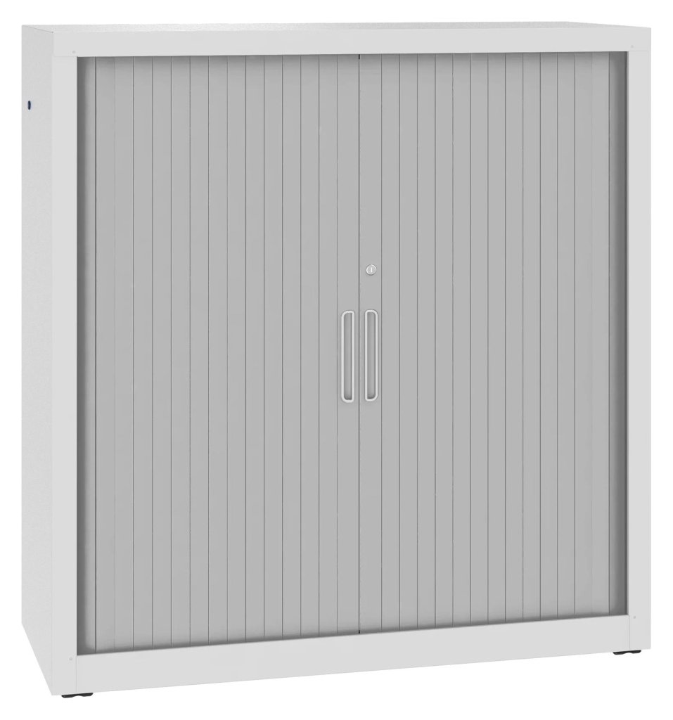 Szafa roletowa metalowa z poziomą żaluzją i 2 półkami. Nośność półki 40 kg. Do wyboru różne kolory. Wysokość 1040 x szerokość 1000 x głębokość 435 mm.