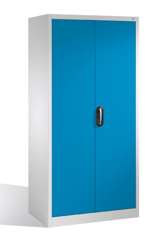 Szafa z drzwiami skrzydłowymi, 4 x półki regulowane w rastrze 25mm (ocynkowane), drzwi pełne ze wzmocnieniami pod perfo, nośność 600 kg. Wysokość 1950 x szerokość 1044 x głębokość 655 mm. Na stanie w kolorze nadwozia szarym RAL 7035 i drzwiach niebieskich RAL 5012.