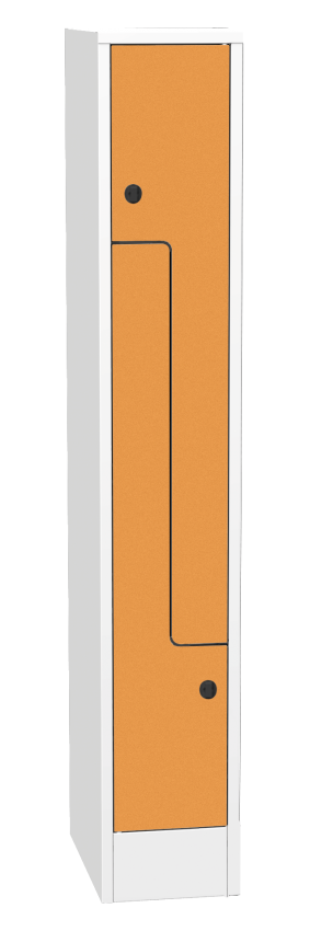 Szafka metalowa dwudrzwiowa dzielona, szerokość 400, wysokość 1850, głębokość 493 mm. Korpus metalowy w kolorze jasnoszarym RAL 7035, drzwi z laminatu HPL w kolorze niebieskim, jasnozielonym lub jasnopomarańczowym. Zamek bębenkowy z dwoma kluczami lub zamknięcie na kłódkę.