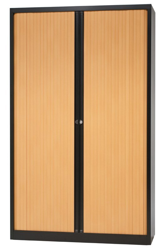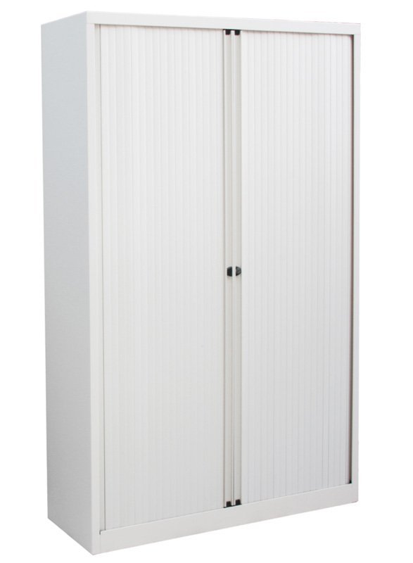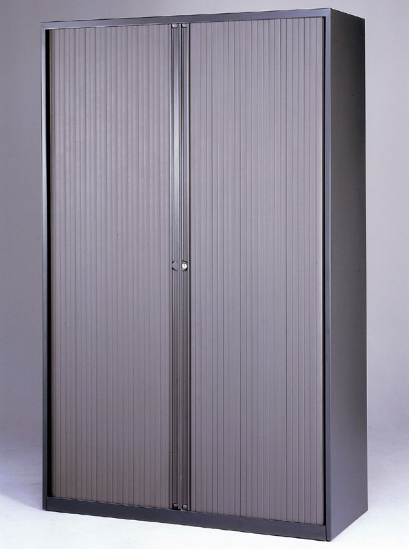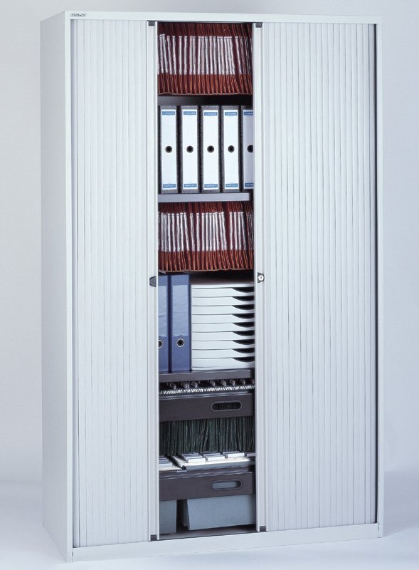 Szafa metalowa z roletą poziomą z dwiema półkami, szerokość 1200, wysokość 1181, głębokość 430 mm, różne kolory.