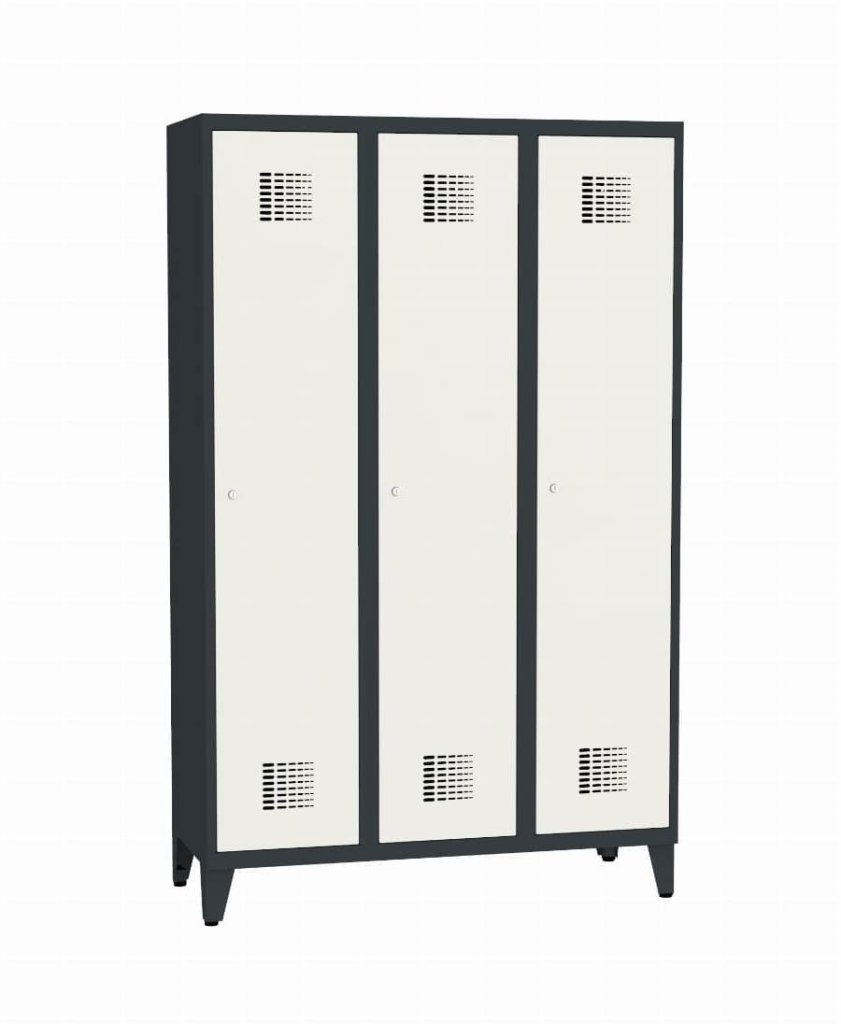 Szafka BHP pracownicza metalowa trzydrzwiowa na nogach, konstrukcja spawana, z wentylacją. Wysokość 1940 x szerokość 1200 x pełny opis i parametry