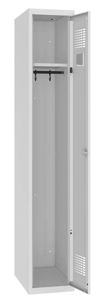 Szafka metalowa pracownicza jednodrzwiowa o konstrukcji spawanej z nowoczesnym systemem wentylacji. Wysokość 1800 x szerokość 300 pełny opis i parametry