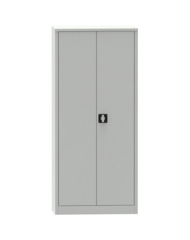 Szafa dwudrzwiowa z cokołem do szafy lub porządków, szerokość 950, wysokość 1950, głębokość 400 mm, 5 półek. Możliwość wymiany drzwi pełnych na drzwi z wypełnieniem szklanym, z wypełnieniem drucianym lub drzwi laminowane w odcieniu buku, brzozy lub wiśni. Kolor korpusu RAL 7035 jasnoszary.