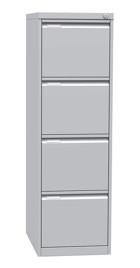 Metalowa szafka kartotekowa na dokumenty formatu A4 z czterema szufladami. Wysokość 1320 x szerokość 405 x głębokość 623 mm. Pełny wysuw szuflad, blokada przed wysunięciem kilku szuflad jednocześnie. Inne kolory na zamówienie.