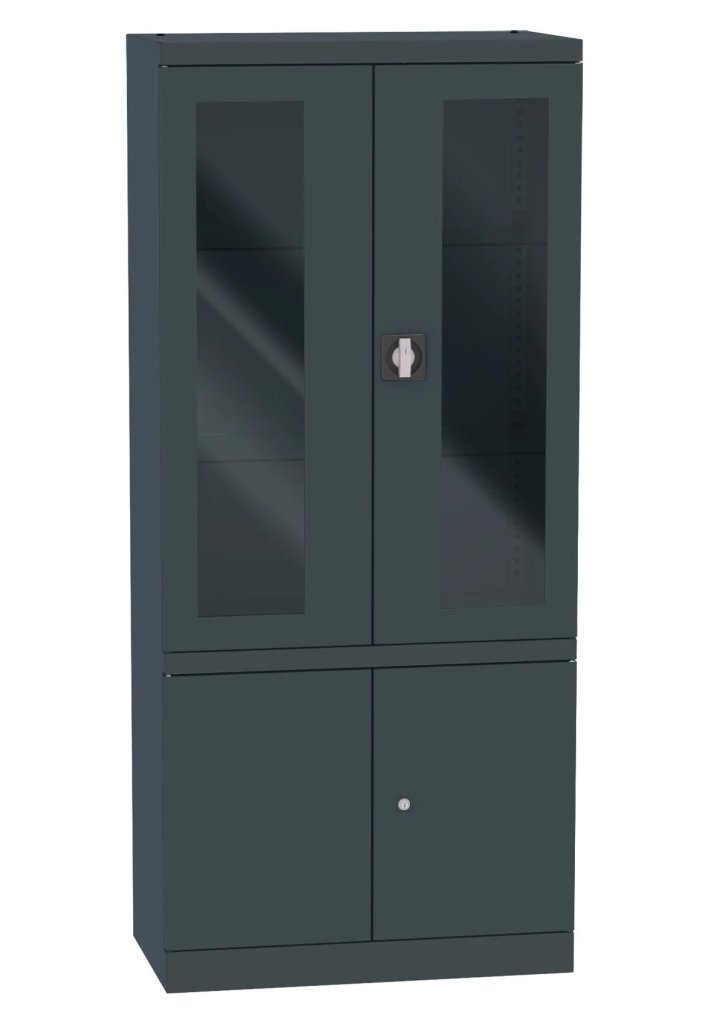 Szafka lekarska z drzwiami szklanymi i pełnymi, wysokość 1800 x szerokość 800 x głębokość 435 mm. Zamek dwupunktowy. 3x regulowana pełny opis i parametry