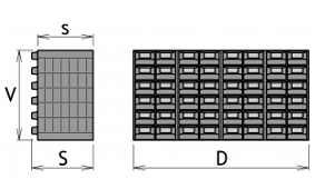 Zestaw znajdzie zastosowanie głównie w magazynach drobnych materiałów. Jest doskonałym pomocnikiem we wprowadzaniu i utrzymywaniu zasad metodologii 5S. Szafka zawiera łącznie 48 szuflad 2601. Wykonana z ABS. Obudowa szafy zawsze jest w kolorze szarym. Gniazda dostępne są w kolorze czarnym, szarym, niebieskim, czerwonym. Poszczególne szafy można łączyć ze sobą za pomocą złączy U, H lub I (2633, 2634 lub 2635).