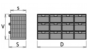 Zestaw znajdzie zastosowanie głównie w magazynach drobnych materiałów. Jest doskonałym pomocnikiem we wprowadzaniu i utrzymywaniu zasad metodologii 5S. Szafka zawiera łącznie 12 szuflad 2603. Wykonana z ABS. Obudowa szafy zawsze jest w kolorze szarym. Gniazda dostępne są w kolorze czarnym, szarym, niebieskim, czerwonym. Poszczególne szafy można łączyć ze sobą za pomocą złączy U, H lub I (2633, 2634 lub 2635).