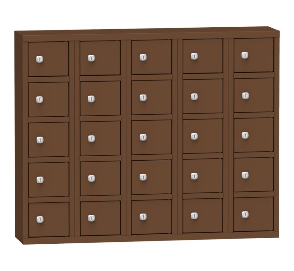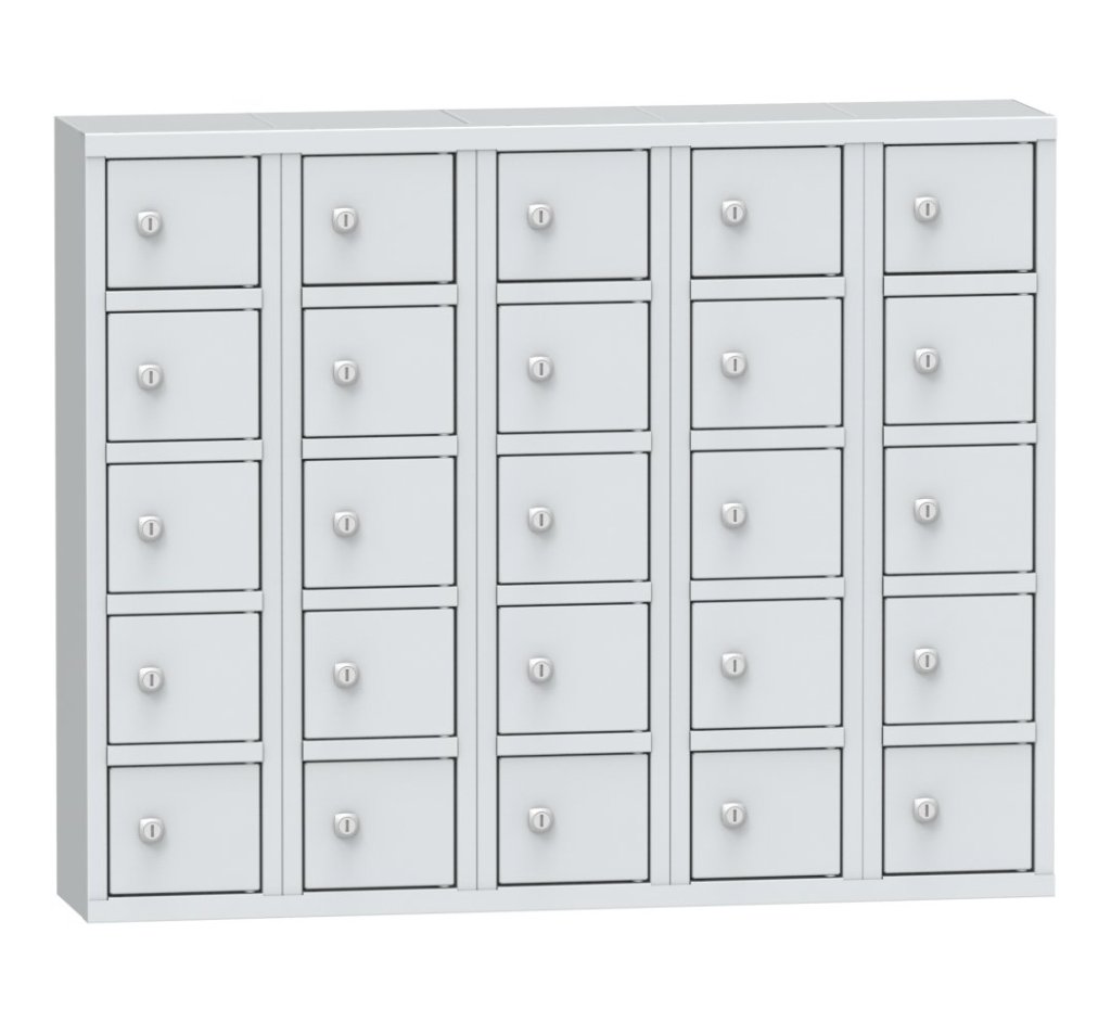 Szafka metalowa ze schowkami przeznaczona jest do przechowywania rzeczy osobistych oraz przedmiotów wartościowych o mniejszych gabarytach. Wymiary wys. 780 x szer. 780 x gł. 200 mm, 20 schowków.