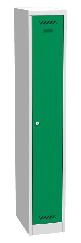Jednokomorowa szafka spawana o szerokości przedziału 300 mm, wysokości 1800 mm i głębokości 500 mm. Zamykanie zamkiem cylindrycznym z dwoma kluczami lub zamkiem obrotowym na kłódkę. Kolor korpusu - jasnoszary, kolor drzwi - szary, niebieski, czerwony, zielony lub żółty. W każdej sekcji znajduje się zagięcie zapobiegające wepchnięciu drzwi do szafki i otwarciu zamka.