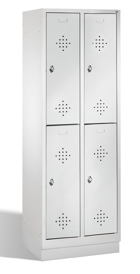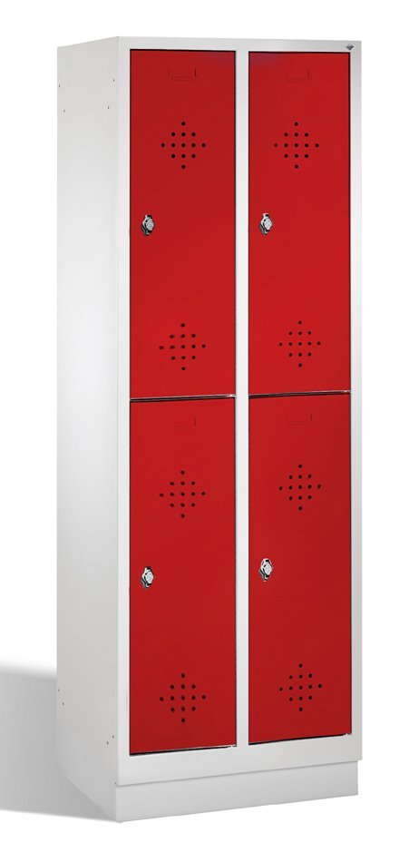 Szafka metalowa BHP czterodrzwiowa o konstrukcji spawanej z nowoczesnym systemem wentylacji. Wysokość 1800 x szerokość 600 x głębokość 500 mm. Wyposażenie standardowe: drążek z haczykami, samoprzylepna plakietka imienna. 16 odcieni kolorów. Różne rodzaje zamków.