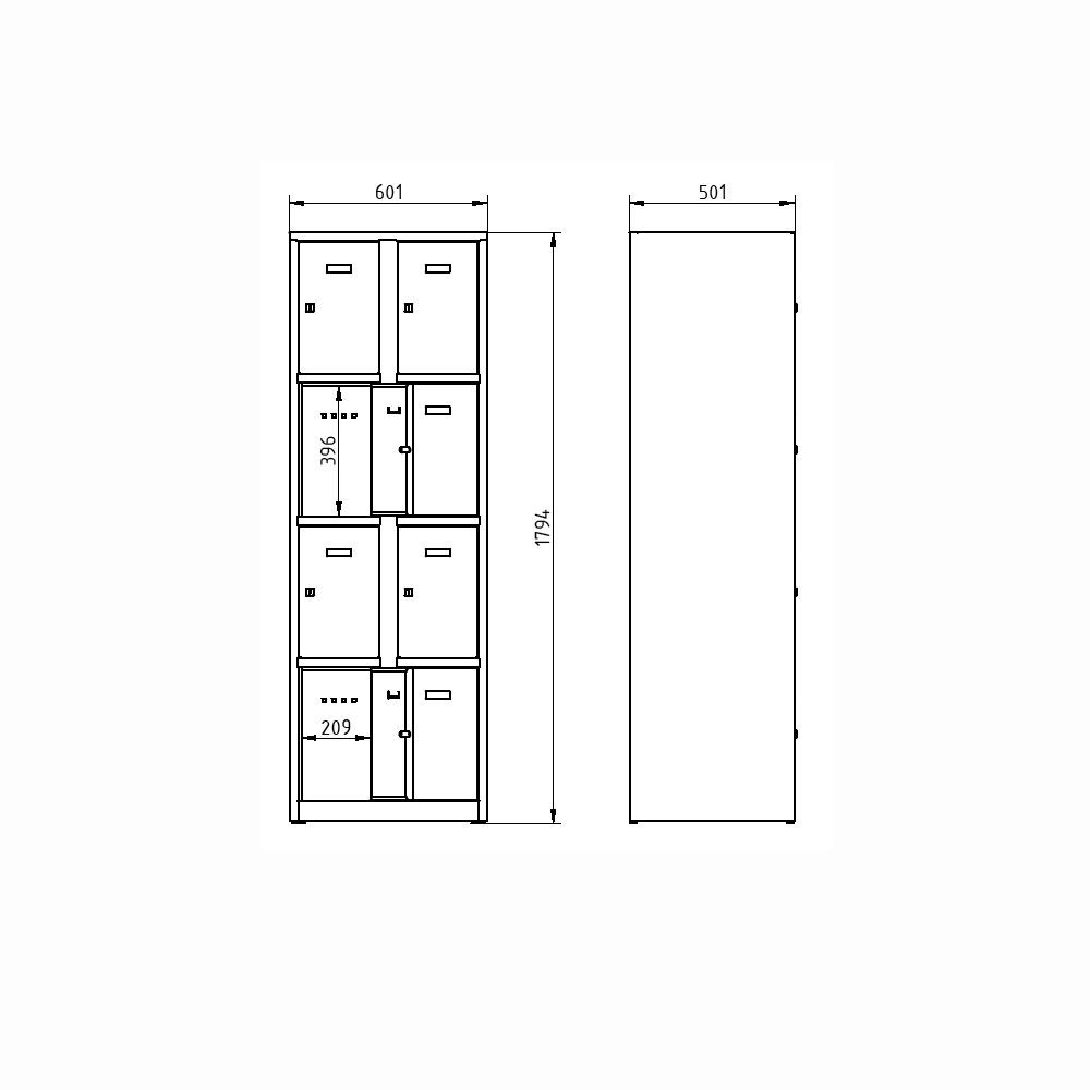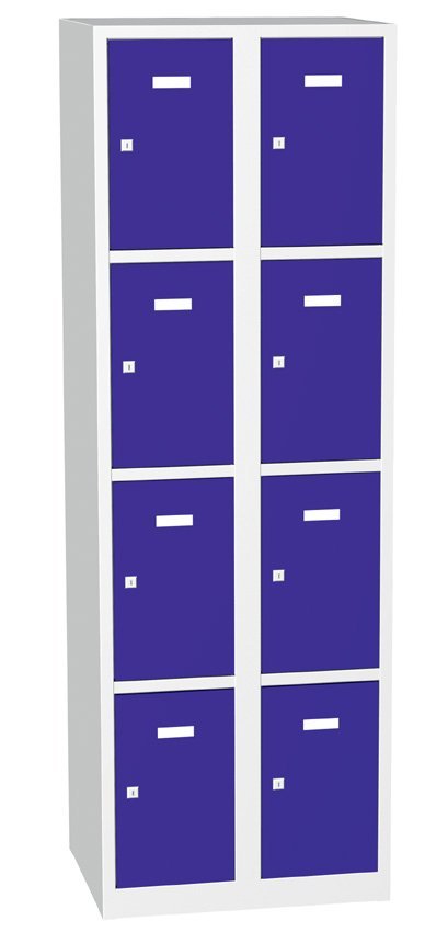 Szafa metalowa z zamykanymi schowkami, wysokość 1800 x szerokość 400 x głębokość 500 mm. Zamknięcie na klucz lub kłódkę. Kolor korpusu RAL 7035 jasnoszary.