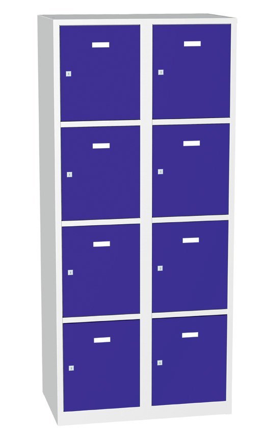 Szafa metalowa z zamykanymi schowkami, wysokość 1800 x szerokość 800 x głębokość 500 mm. Zamknięcie na klucz lub kłódkę. Kolor korpusu RAL 7035 jasnoszary.