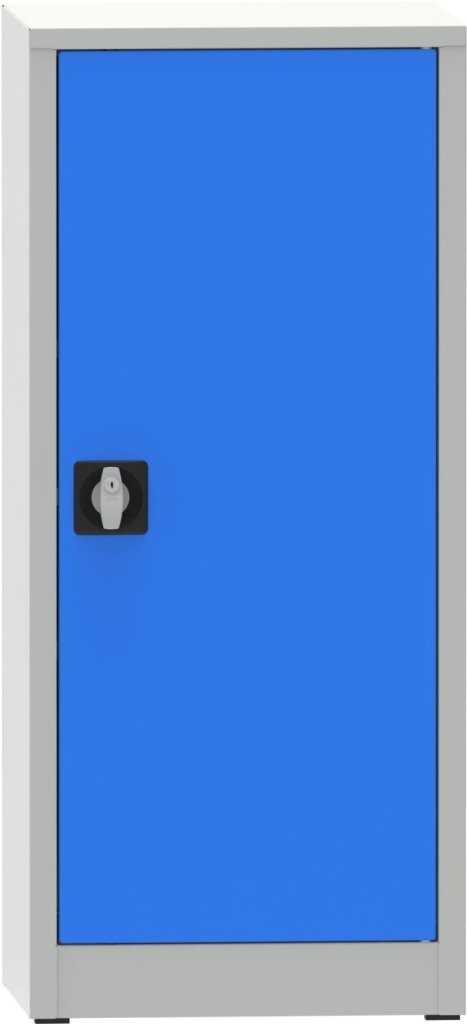 Szafa metalowa spawana, szerokość 508, wysokość 1150, głębokość 400 mm, 2 regulowane półki. Kolor korpusu RAL 7035 jasnoszary, drzwi RAL 7035 jasnoszary i RAL 5012 niebieski.
