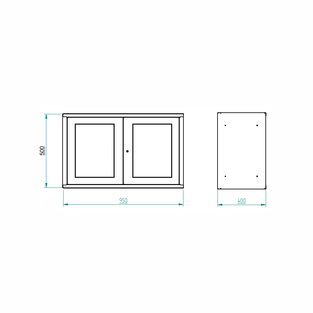 Dwudrzwiowa szafka ze szklanymi drzwiami - nadstawka, szerokość 950, wysokość 800, głębokość 400 mm, 1 półka. Kolor korpusu RAL 7035 jasnoszary.