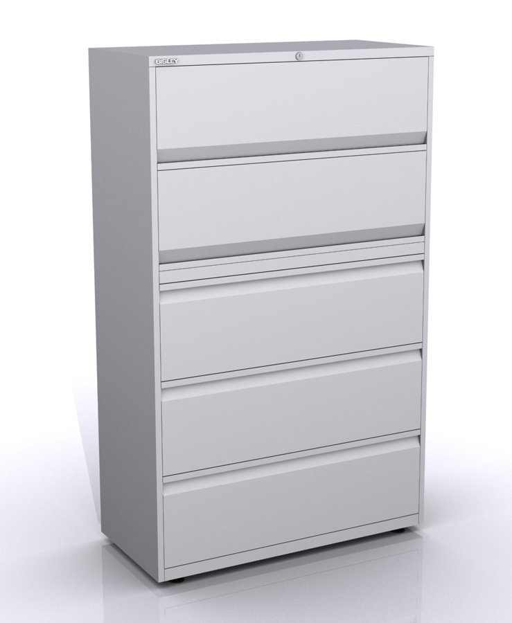 Szafka na dokumenty SystemFile z drzwiami na zawiasach i czterema szufladami na teczki i dokumenty w formacie A4. Wysokość 1947 - 1971, szerokość 1000, głębokość 470 mm.
