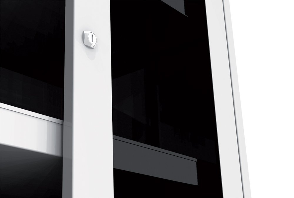 Szafa na narzędzia CNC z drzwiami uchylnymi, drzwiami pełnymi, nośność 800kg. Wysokość 1950, szerokość 950, głębokość 600 mm. Możliwość wymiany drzwi pełnych na szklane lub drzwi z wypełnieniem drucianym. Kolor korpusu RAL 7035 jasnoszary.