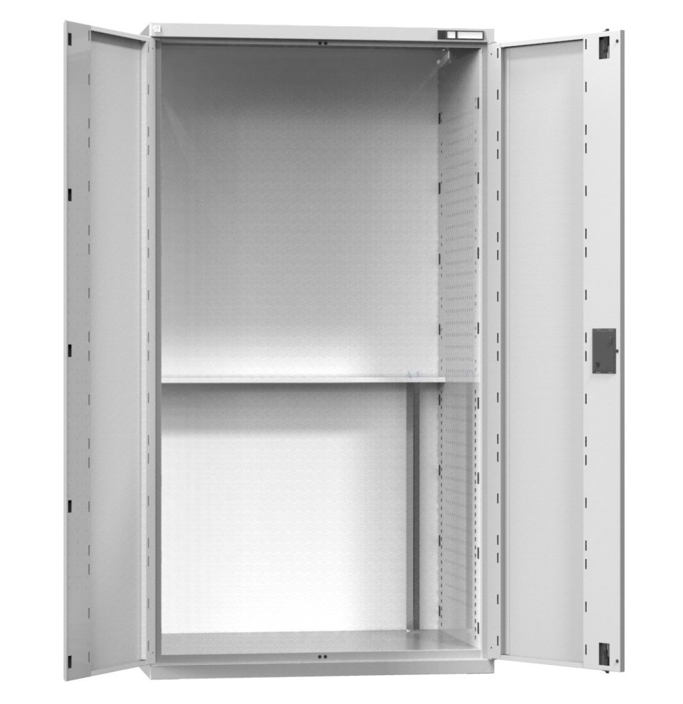 Walizka na narzędzia NC z drzwiami uchylnymi, drzwiami pełnymi, nośność 600 kg. Wysokość 1950 x szerokość 1044 x głębokość 655 mm, bez wyposażenia wewnętrznego.
