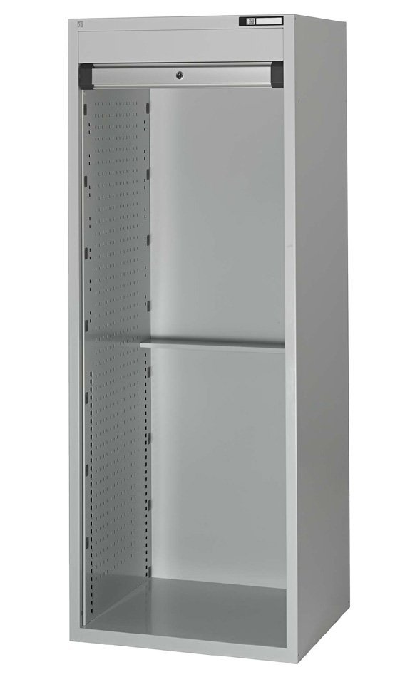 Walizka na narzędzia NC z roletą, roleta aluminiowa samozwijająca lamelowa, nośność 600 kg. Wysokość 1950 x szerokość 1044 x głębokość 655 mm, bez wyposażenia wewnętrznego.