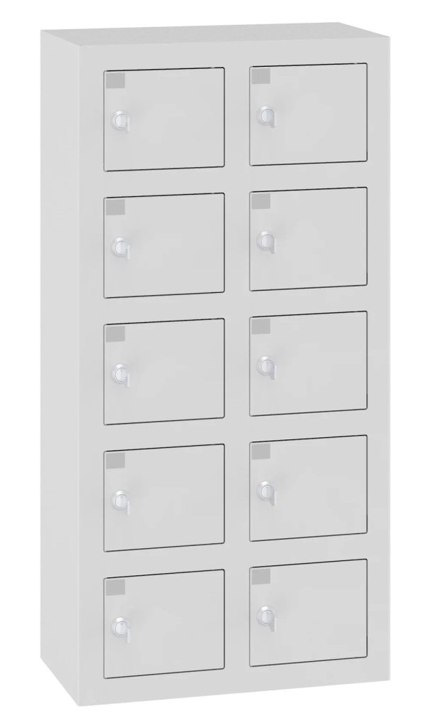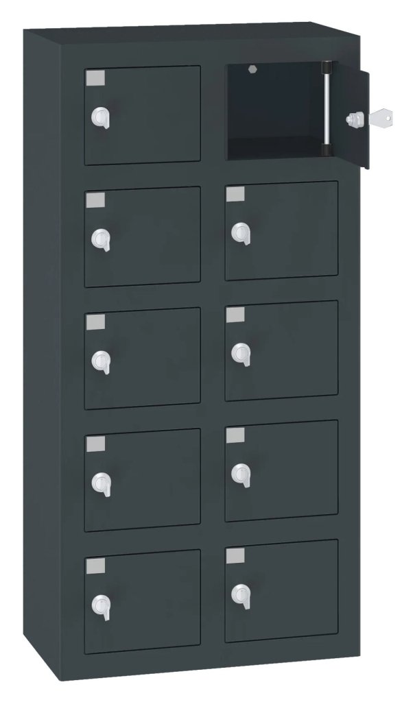 Metalowa szafka ze schowkami do bezpiecznego przechowywania telefonów komórkowych. Przydatna w miejscach pracy czy użyteczności publicznej, w których nie wolno używać telefonu komórkowego. Do wyboru 16 odcieni kolorystycznych wliczonych w cenę. Różne rodzaje zamków.