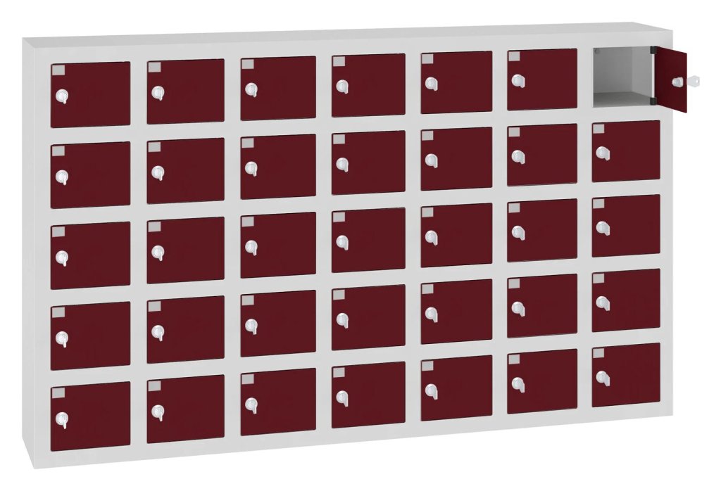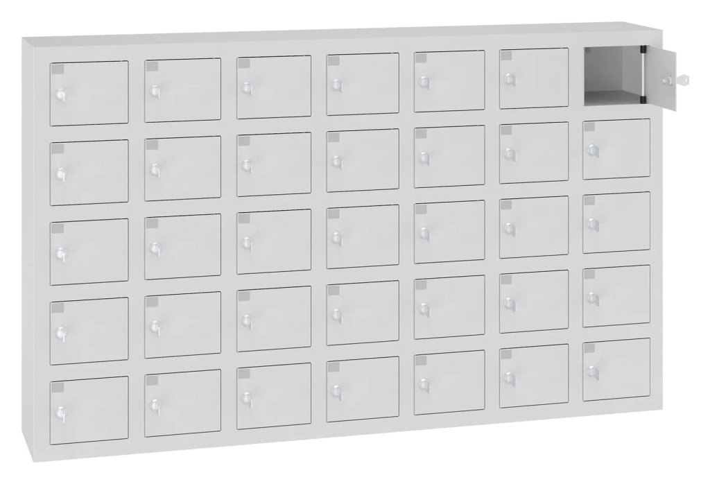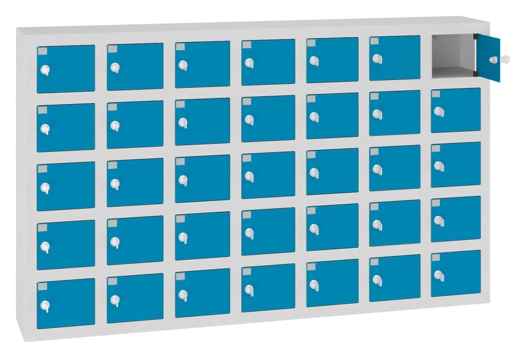 Metalowa szafka ze schowkami do bezpiecznego przechowywania telefonów komórkowych. Przydatna w miejscach pracy czy użyteczności publicznej, w których nie wolno używać telefonu komórkowego. Do wyboru 16 odcieni kolorystycznych wliczonych w cenę. Różne rodzaje zamków.