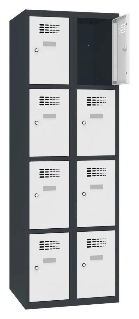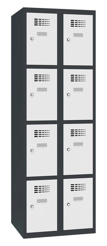 Szafka metalowa BHP ośmiodrzwiowa o konstrukcji spawanej z nowoczesnym systemem wentylacji. Wysokość 1800 x szerokość 600 x pełny opis i parametry