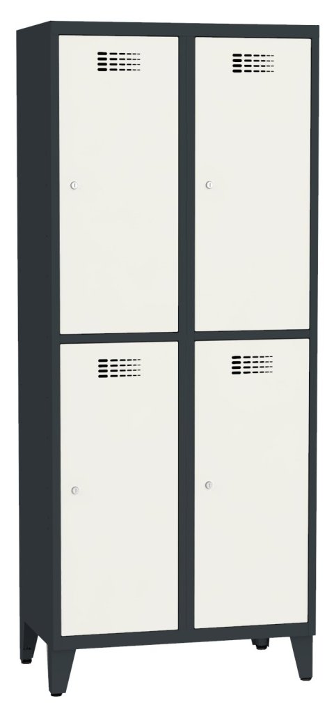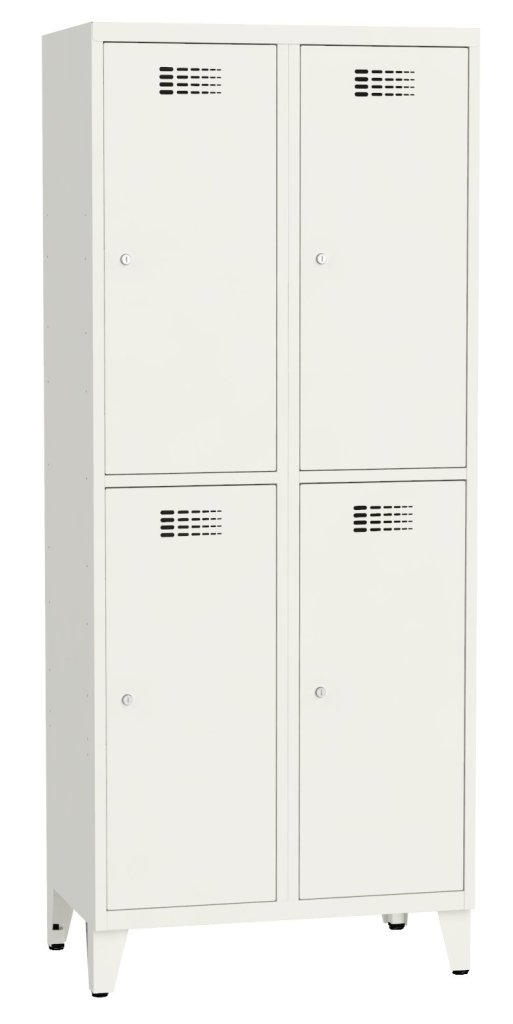 Szafka metalowa pracownicza czterodrzwiowa o konstrukcji spawanej i nowoczesnej konstrukcji systemu wentylacji. Idealny do małych pomieszczeń. Wysokość 1800 x szerokość 600 x głębokość 500 mm. Standardowe wyposażenie szafki: drążek z haczykami, plakietka samoprzylepna. Do wyboru 16 odcieni kolorów. Zamek bębenkowy lub zamknięcie na kłódkę.