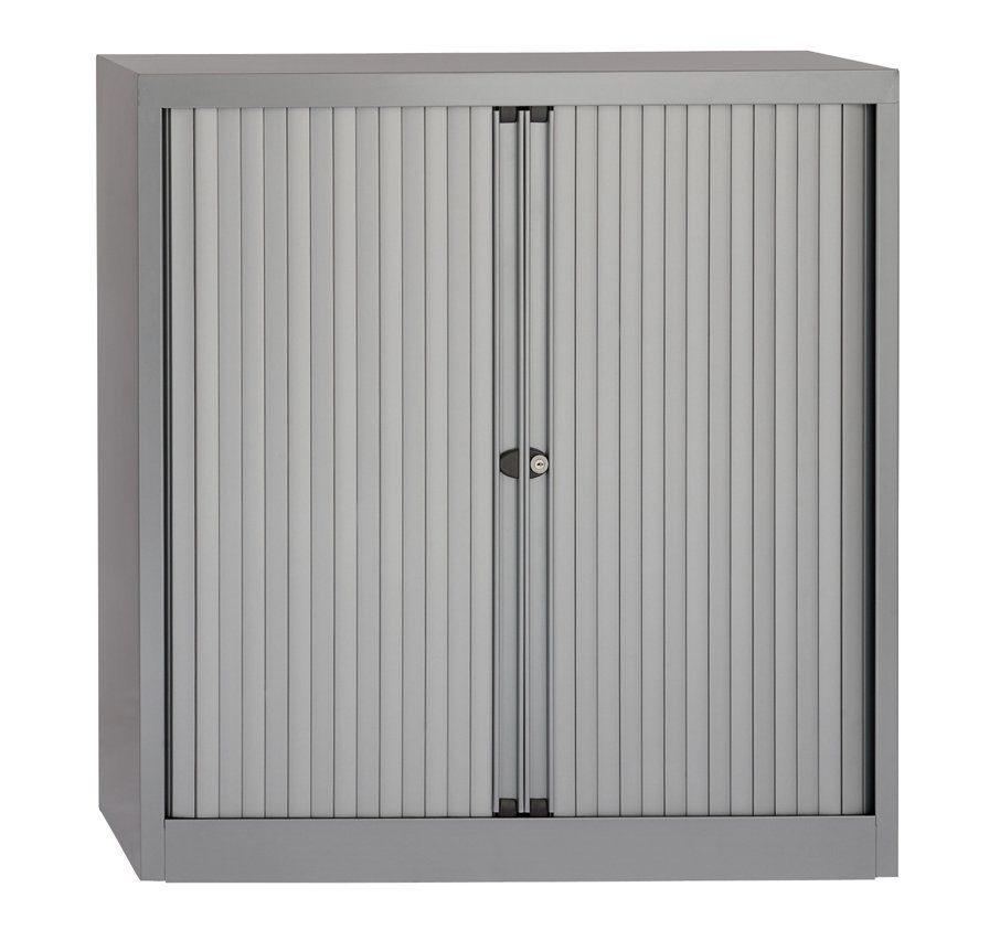 Szafka roletowa metalowa z roletą poziomą z dwiema półkami, szerokość 1000, wysokość 1181, głębokość 430 mm, różne kolory.