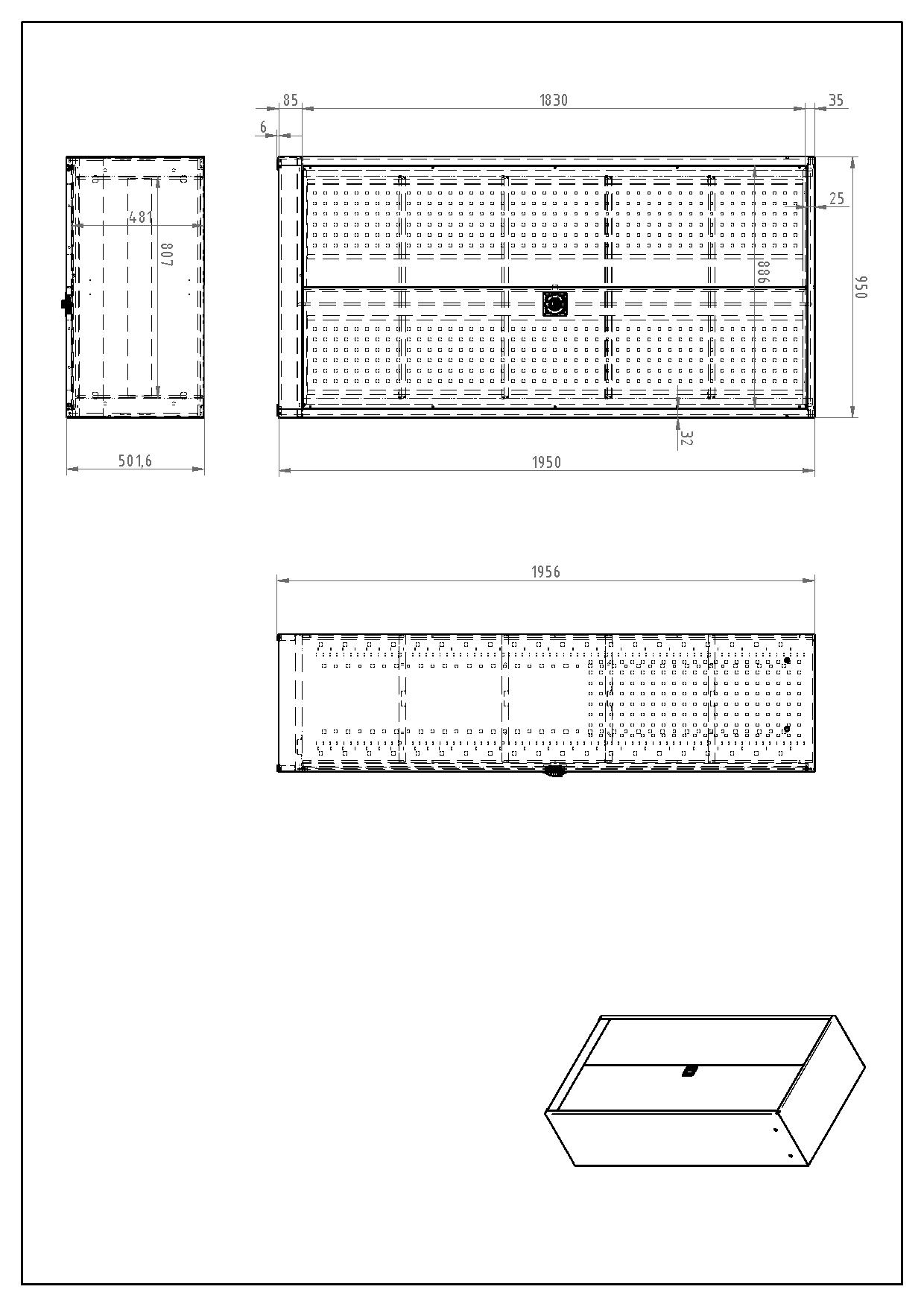 Szafa warsztatowa jednodrzwiowa, szerokość 505, wysokość 1950, głębokość 600 mm, 2 półki. Możliwość wymiany drzwi pełnych na ramę ze szkła hartowanego lub siatki drucianej dla lepszego przeglądu zawartości szafki. Nośność korpusu 800 kg, pojemność półki 100 kg. Kolor korpusu RAL 7035 jasnoszary.