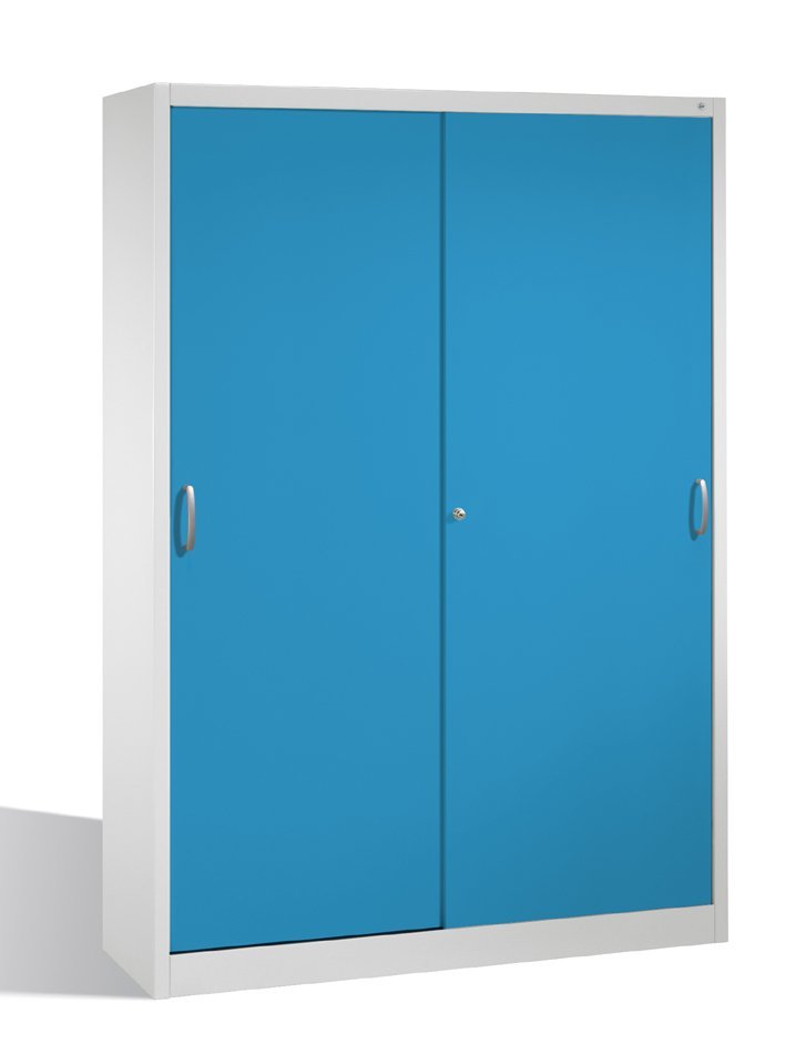Szafa warsztatowa z trwałą konstrukcją stalową i drzwiami przesuwnymi. 8 regulowanych, ocynkowanych półek. Nośność 70 kg/półkę. Na środku poprzeczki. Kolor korpusu jasnoszary RAL 7035, kolor drzwi do wyboru. Cylindryczny zamek bezpieczeństwa. Wymiary w mm (wys. x szer. x gł.) 1950 x 1600 x 400. Dostawa w ciągu 15 dni.
