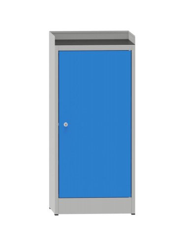 Szafa warsztatowa jednodrzwiowa, szerokość 505, wysokość 1950, głębokość 600 mm, 2 półki. Możliwość wymiany drzwi pełnych na ramę ze szkła hartowanego lub siatki drucianej dla lepszego przeglądu zawartości szafki. Nośność korpusu 800 kg, pojemność półki 100 kg. Kolor korpusu RAL 7035 jasnoszary.