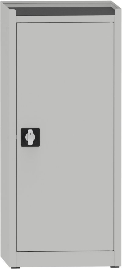 Szafa warsztatowa jednodrzwiowa, szerokość 505, wysokość 1950, głębokość 600 mm, 2 półki. Możliwość wymiany drzwi pełnych na ramę ze szkła hartowanego lub siatki drucianej dla lepszego przeglądu zawartości szafki. Nośność korpusu 800 kg, pojemność półki 100 kg. Kolor korpusu RAL 7035 jasnoszary.