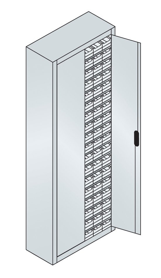 Dwudrzwiowa szafa warsztatowa o trwałej konstrukcji stalowej. 18 regulowanych półek ocynkowanych, nośność 70 kg/półkę. Pudełka: 60x rozm. 2 - czerwone, 54x rozm. 2 - niebieskie. Cylindryczny zamek bezpieczeństwa z uchwytem. Wymiary w mm (wys. x szer. x gł.) 1980 x 700 x 300. Dostawa w ciągu 15 dni.