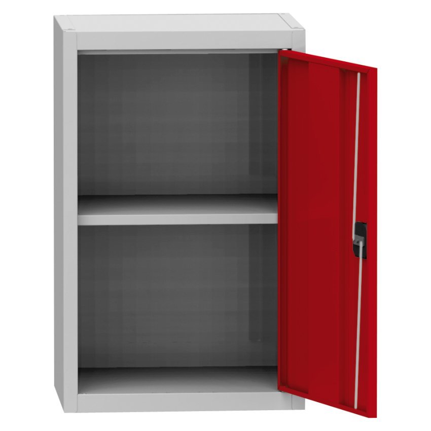 Szafa z drzwiami drucianymi, wysokość 800 x szerokość 505 x głębokość 400 mm. Ryglowanie na zamek bębenkowy z mechanizmem rozstawu osi. 1 x regulowana półka stalowa (nośność 60 kg). Drzwi z wypełnieniem drucianym. Kolor korpusu RAL 7035 jasnoszary.