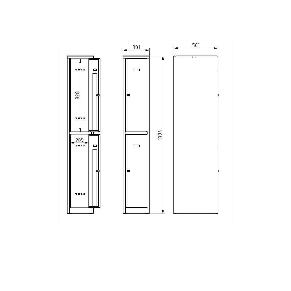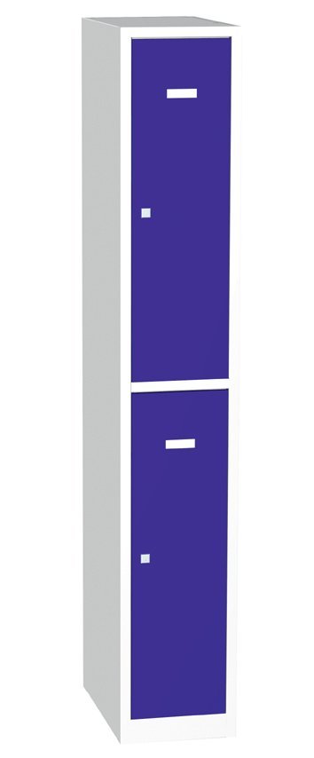Szafka metalowa z zamykanymi schowkami, wysokość 1800 x szerokość 300 x głębokość 500 mm. Zamknięcie na klucz lub kłódkę. Kolor korpusu RAL 7035 jasnoszary.