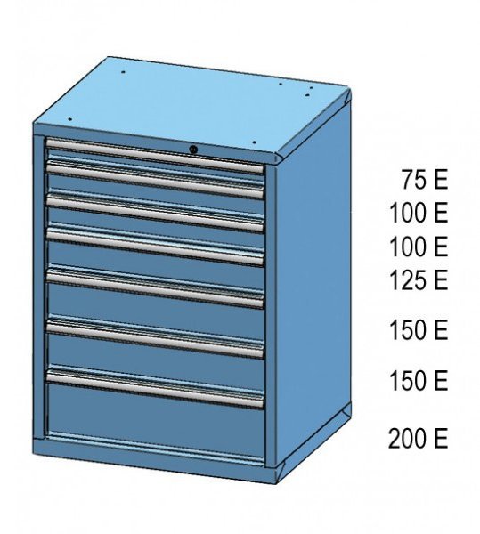 Szafka z szufladami, 7 szuflad, wysokość 990, szerokość 731, głębokość 630 mm. Wymiary wewnętrzne szuflady 612 x 459 mm. pełny opis i parametry