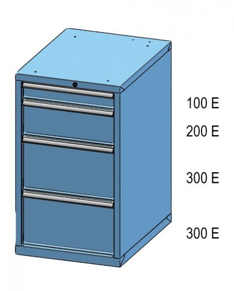 Szafka z szufladami, 3x szuflady, 1x drzwi + 1x regulowana półka, wysokość 990, szerokość 578, głębokość 780 mm. Wymiary wewnętrzne szuflady 459 x 612 mm.