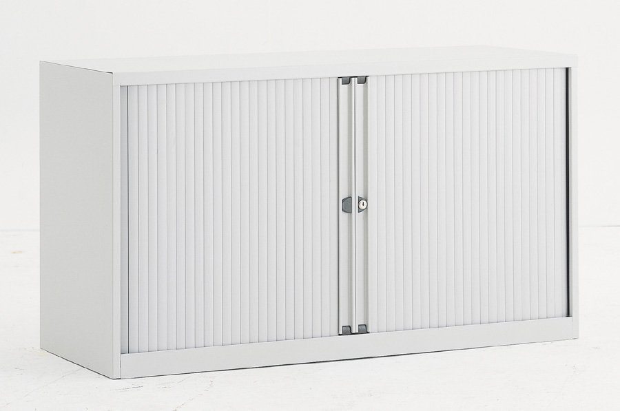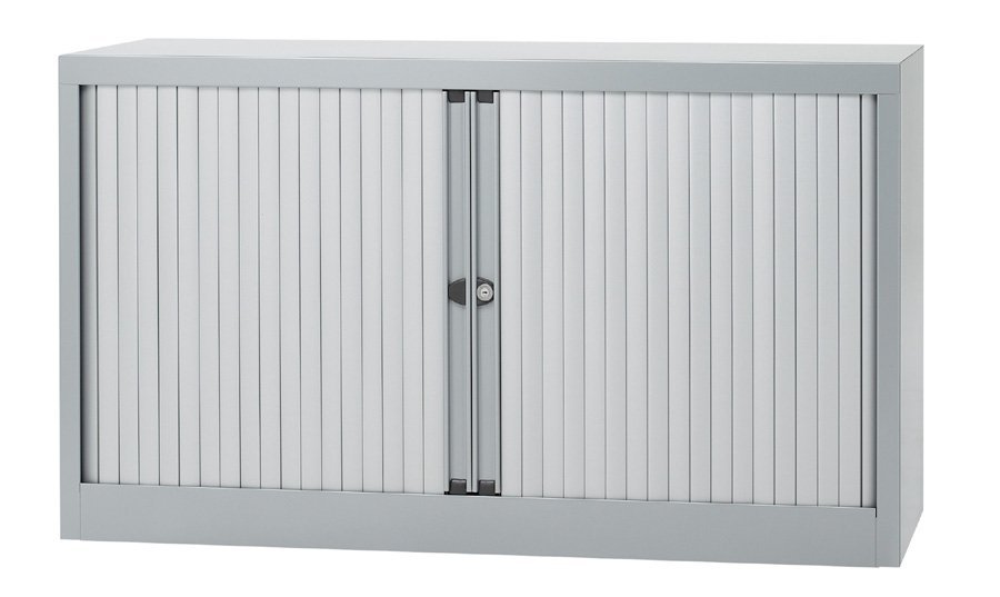 Szafka żaluzjowa metalowa z poziomymi żaluzjami z jedną półką szerokość 1200, wysokość 695, głębokość 430 mm, różne kolory. pełny opis i parametry