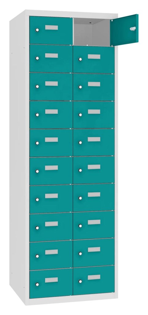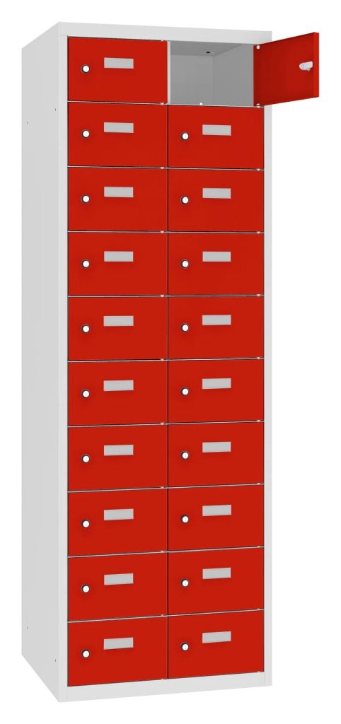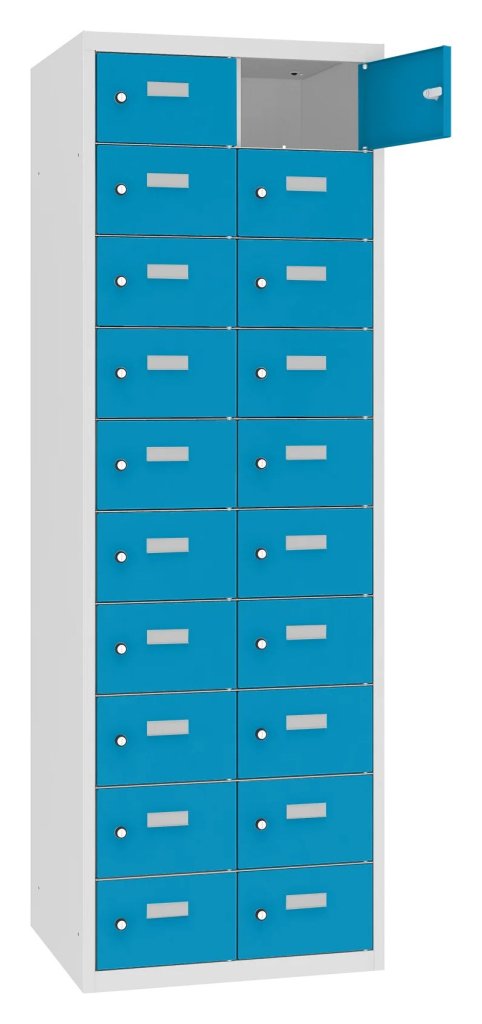 Schowki do przechowywania rzeczy osobistych pracowników, takich jak żywność, telefony komórkowe, dokumenty i inne drobne przedmioty. Idealny do kuchni lub pomieszczeń socjalnych. Wysokość 1800 x szerokość 600 x głębokość 300 mm. 16 odcieni kolorów do wyboru w cenie bez dopłaty.