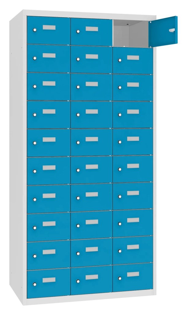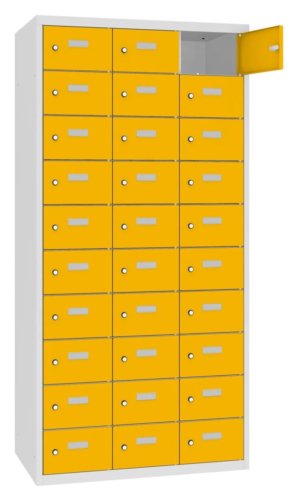 Schowki do przechowywania rzeczy osobistych pracowników, takich jak żywność, telefony komórkowe, dokumenty i inne drobne przedmioty. Idealny do kuchni lub pomieszczeń socjalnych. Wysokość 1800 x szerokość 875 x głębokość 500 mm. 16 odcieni kolorów do wyboru w cenie bez dopłaty.