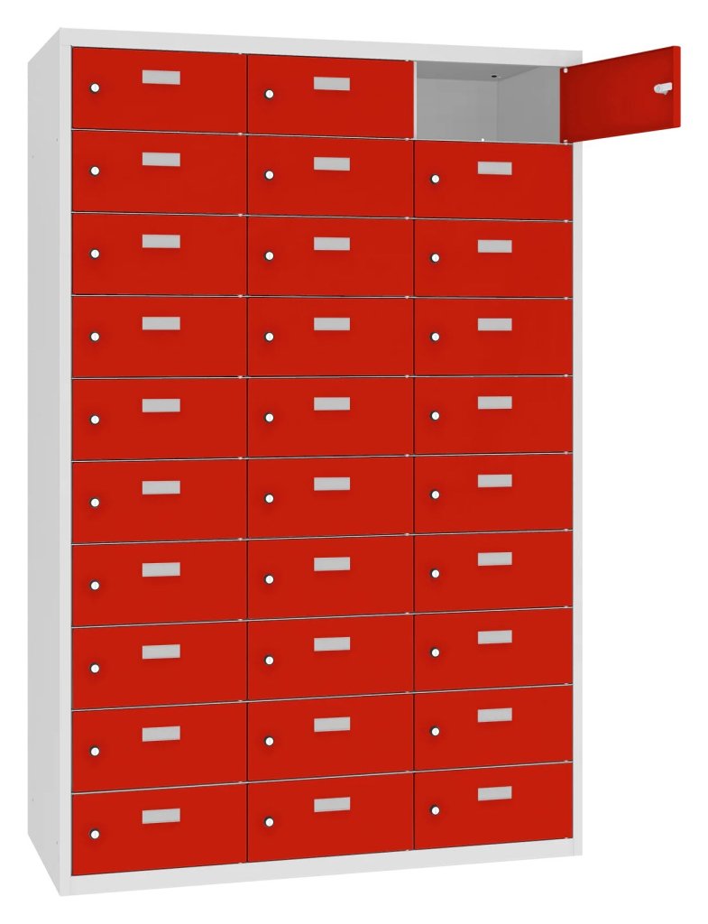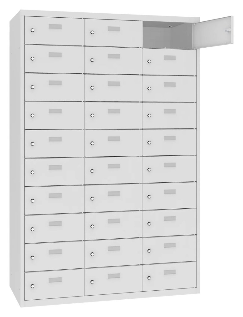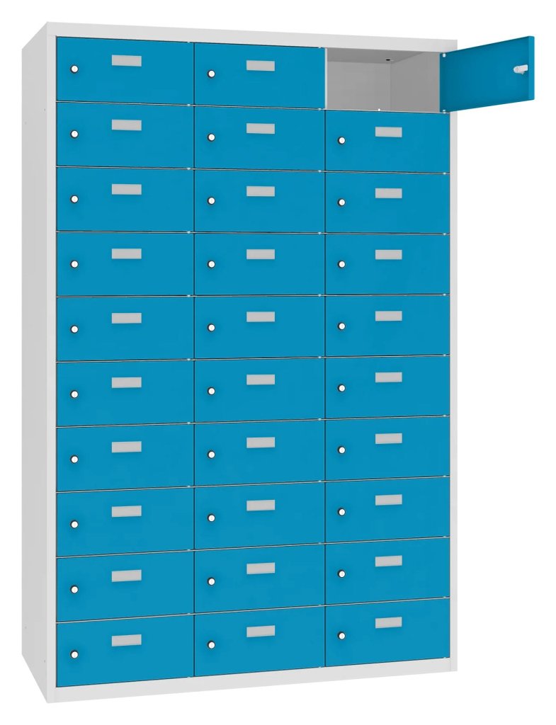 Schowki do przechowywania rzeczy osobistych pracowników, takich jak żywność, telefony komórkowe, dokumenty i inne drobne przedmioty. Idealny do kuchni lub pomieszczeń socjalnych. Wysokość 1800 x szerokość 1175 x głębokość 300 mm. 16 odcieni kolorów do wyboru w cenie bez dopłaty.