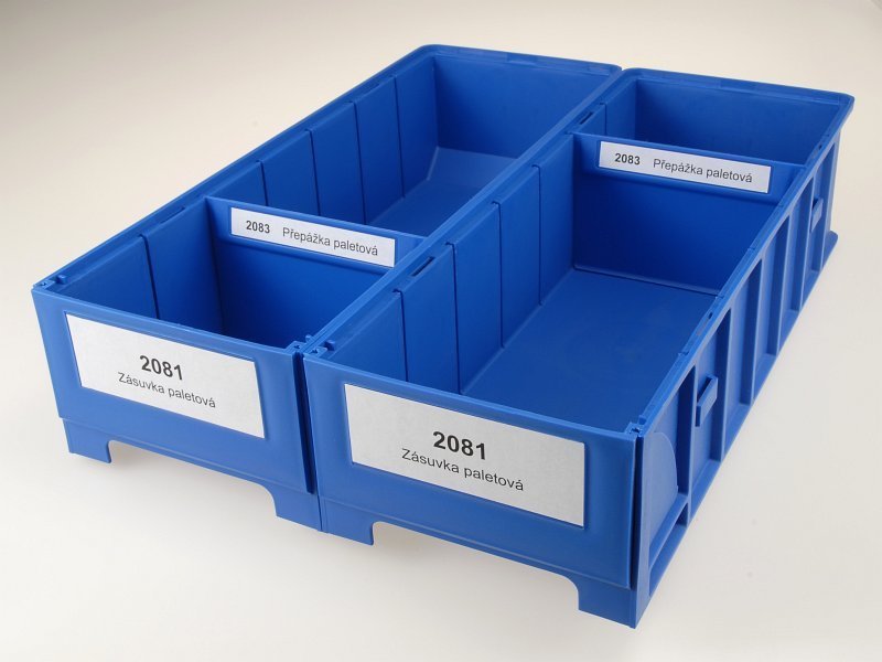 Szuflady paletowe wykorzystywane są głównie w magazynach. Umożliwiają efektywne i przejrzyste przechowywanie materiałów łączących, sprężyn i innych standardowych komponentów. Front szuflady jest uchylny i zatrzaskuje się po zamknięciu. Na powierzchni znajduje się pole do naklejenia etykiety samoprzylepnej. Zalecane wymiary etykiet to 104x40 mm. Wymiary szuflad zostały zaprojektowane tak, aby efektywnie wypełnić przestrzeń na standardowej europalecie. Można je układać warstwami jedna na drugiej, a ich zawartość pozostaje dostępna.
