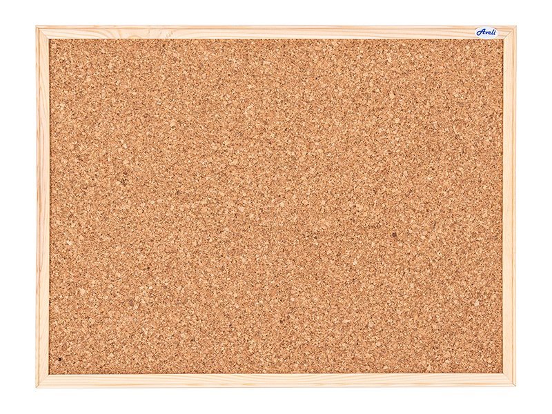 Deska z powierzchnią korkową i ramą drewnianą, wysokość 450 mm x szerokość 600 mm.