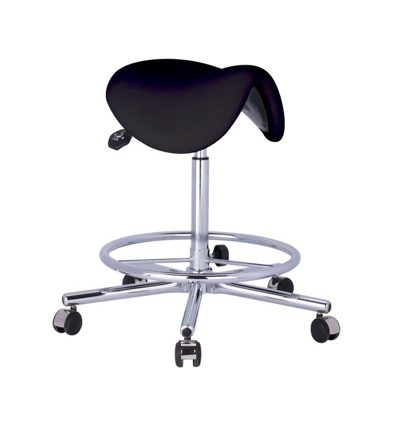 Taboret lekarski, tapicerka z tkaniny lub skóry nadającej się do prania, tłok gazowy, podstawa ze stali nierdzewnej, wykończenie chromowane.