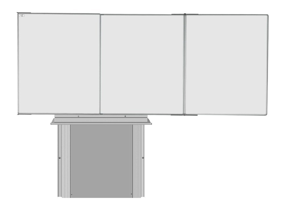 Trzyczęściowa tablica magnetyczna z dwuwarstwową powierzchnią ceramiczną najwyższej jakości na stojaku podnośnym AL + ramię do projektora. Rama aluminiowa anodowana w naturalnym odcieniu, narożniki plastikowe. Wymiary wys. 120 x szer. 200 cm. Projektor może być oferowany na zamówienie.