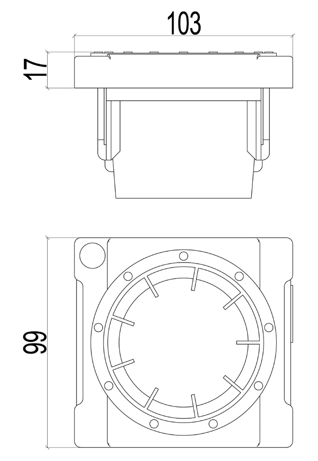 Plastikowy uchwyt do przechowywania narzędzi NC Capto C3. Rozmiar E3, całkowite wymiary uchwytu (szerokość x głębokość) to 99 x 103 mm.