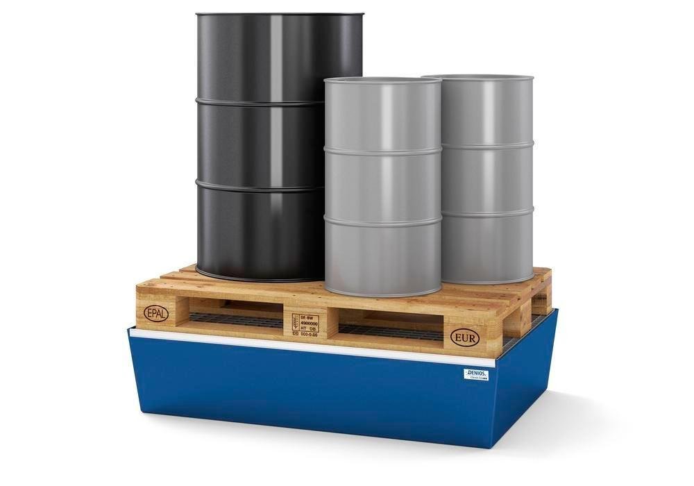 Wanna ociekowa wykonana ze spawanej konstrukcji stalowej. Dopuszczona do przechowywania cieczy łatwopalnych (H224-226) i substancji zagrażających wodzie wszystkich klas. Zabezpieczenie antykorozyjne - malowana proszkowo w kolorze niebieskim RAL 5010. Bez nóżek, do przechowywania bezpośrednio na płaskiej podłodze lub na paletach. Zdejmowana ocynkowana kratka.