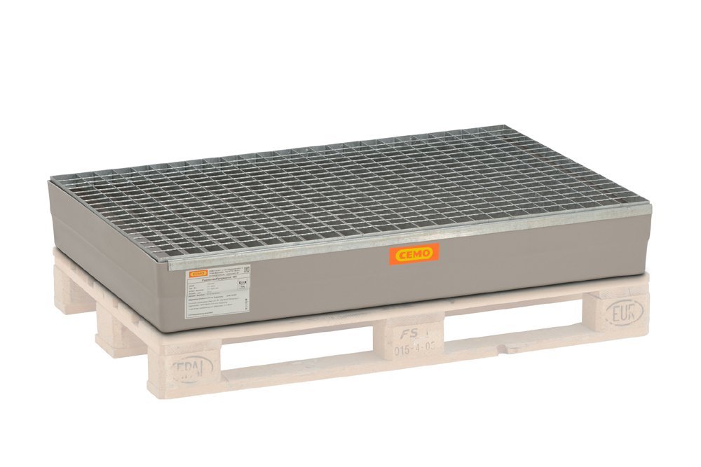 Paletowa wanna wychwytowa wykonana z włókna szklanego. Wymiary szerokość 1200 x głębokość 800 mm. Bez ograniczników blokujących, z zatwierdzeniem. Nadaje się do palet euro.